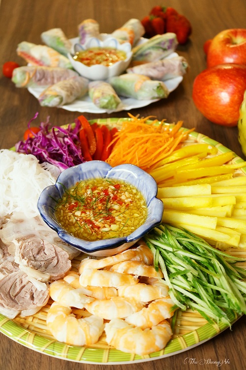 1 tuần vài bữa nhiều rau củ cuốn chấm chua ngọt thế này cho da đẹp dáng xinh mà hương vị cũng hấp dẫn mọi thành viên trong gia đình lắm ý.